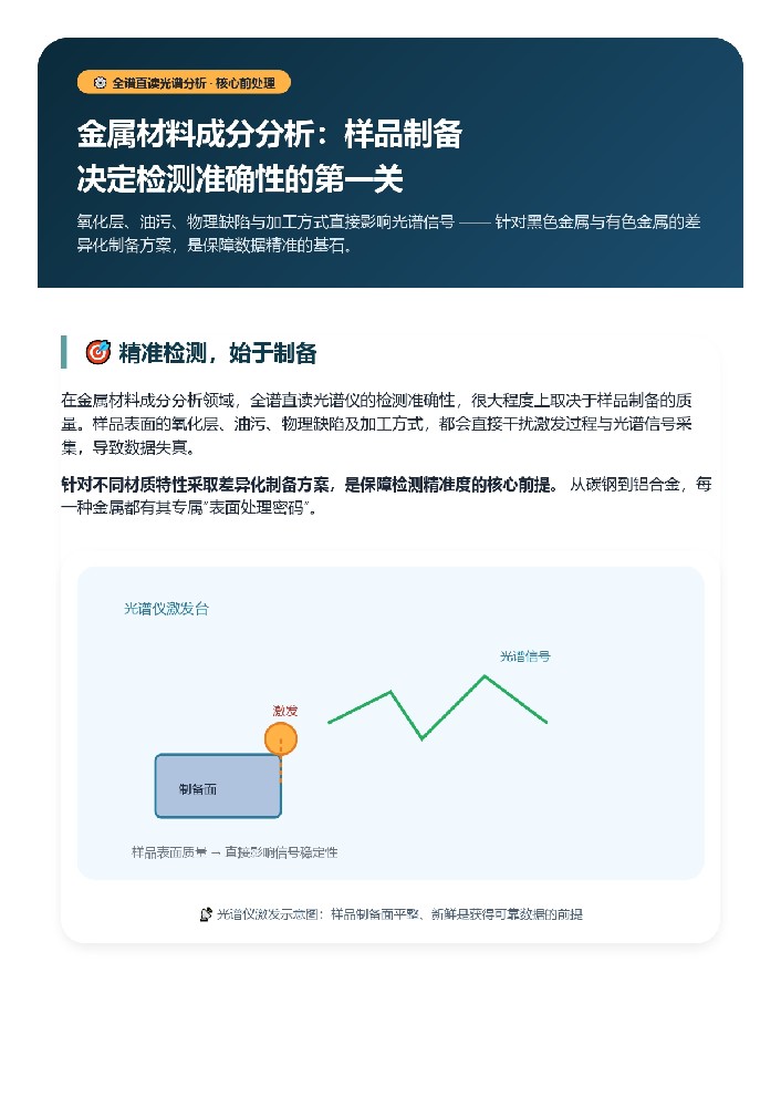 直讀火花光譜儀(OES)檢測金屬薄板注意事項一、樣品要求與前處理(用戶自行處理)1.厚度控制:常規直讀光譜儀檢測建議樣品厚度≥1mm,過薄易擊穿、漏氣,導致數據失真;厚度<0.8mm不建議采用常規OES激發檢測。2.表面處理:去除樣品表面氧化皮、油污、涂層、銹蝕及鍍層;采用砂輪或砂紙均勻打磨,保證表···查看詳情